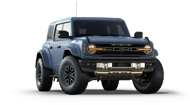 - Experience unmatched capability, bold style, and true off-road dominance with this 2025 Ford Bronco Raptor. Finished in the eye-catching Azure Gray Metallic Tri-Coat, this four-door 4x4 delivers the rugged performance that the Raptor name is known for, powered by a high-output 3.0L EcoBoost V6 paired with a smooth 10-speed automatic transmission. The advanced 4WD system, front and rear locking differentials, and the Terrain Management System with G.O.A.T. Modes ensure youre ready for any adventure, whether its dunes, trails, or pavement. Built around the HOSS 4.0 suspension with FOX Live Valve dampers, the Bronco Raptor offers incredible stability, control, and confidence at speed. Heavy-duty bash plates, reinforced bumpers, tow hooks, and rock rails with removable running boards reinforce its purpose-built design. This model is equipped with aggressive 37" all-terrain tires mounted on high-gloss black 17-inch aluminum wheels, giving it the stance and capability only a Bronco Raptor can offer. Inside, the Onyx/Blue leather-trimmed and suede seating creates a sporty yet refined cabin. The interior also includes a digital instrument cluster, a 12" center-stack touchscreen, smart-charging USB ports, a MOLLE strap system, and a sport leather steering wheel with paddle shifters. The 60/40 split rear seat provides added versatility, while the optional body-color hard top with sound-deadening headliner enhances comfort on daily drives. Technology and safety features are robust, featuring the 360-degree camera, FordPass Connect, Pre-Collision Assist with Automatic Emergency Braking, SiriusXM with 360L, Hill Start Assist, and AdvanceTrac with RSC. With the included LUX Package, youll also enjoy premium convenience, connectivity, and driver-assist upgrades throughout the cabin. With its unmistakable Raptor attitude, advanced off-road engineering, and elevated interior, this 2025 Ford Bronco Raptor stands at the top of the Bronco lineupready for both wild terrain and everyday roads with equal confidence.