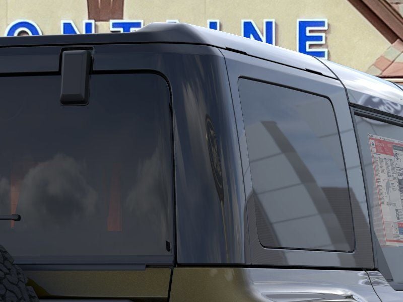 The 2025 Ford Bronco Raptor is built for extreme off-road performance with rugged style to match. This four-door 4x4 is finished in bold Shelter Green and powered by a 3.0L EcoBoost V6 engine paired with a 10-speed automatic transmission. Inside, the Onyx leather-trimmed and suede seats, accented by Code Orange seat belts and an interior carbon fiber package, bring a premium, performance-inspired feel. The Raptor Black Appearance Package adds 17-inch black forged beadlock-capable wheels, 37-inch all-terrain tires, blackout graphics, and black-painted fender flares. Engineered for adventure, it features advanced 4x4 capability with front and rear locking differentials, a front stabilizer bar disconnect, HOSS 4.0 suspension with FOX Live Valve dampers, and full metal bash plates. Convenience and technology highlights include a 12-inch LCD touchscreen, 360-degree camera, digital instrument cluster, and the LUX Package for added comfort and connectivity. From its heavy-duty modular front bumper with Rigid fog lamps to its reinforced swing gate and rock rails, the Bronco Raptor is designed to conquer any terrain in confidence and style., Equipment Group 374A Lux Package, Gloss Black Sideview Mirror Skull Caps, Interior Carbon Fiber Pack, Raptor Black Appearance Package, Wheels: 17 Dark Carbonized Gray Alloy Painted.