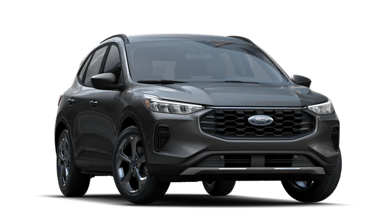 - Experience refined performance and bold style in the 2025 Ford Escape ST-Line AWD, finished in Carbonized Gray Metallic. Powered by a responsive 1.5L EcoBoost engine with Auto Start-Stop Technology and paired with an 8-speed automatic transmission, this Escape offers a sporty yet efficient drive. The ST-Line trim features unique black mesh grille accents, 18" Rock Metallic painted wheels, a distinctive rear spoiler, and LED headlamps and taillamps that enhance its aggressive appearance. Inside, the Ebony interior with red stitching creates a sporty, driver-focused cabin. Sport bucket front seats, a flat-bottom steering wheel, and a rotary gear shift dial add to the athletic feel. Comfort and convenience are prioritized with dual-zone automatic climate control, heated front seats, a heated steering wheel, and a power liftgateall part of the Cold Weather Package. Stay connected with FordPass Connect, SiriusXM with 360L, and smart features like Intelligent Access with push-button start and a remote start system. Safety is built-in with Ford Co-Pilot360 features like BLIS with Cross-Traffic Alert, a rearview camera, and the SOS Post-Crash Alert System. This all-wheel-drive Escape ST-Line is designed to turn heads and keep you confidently in control in any season.
