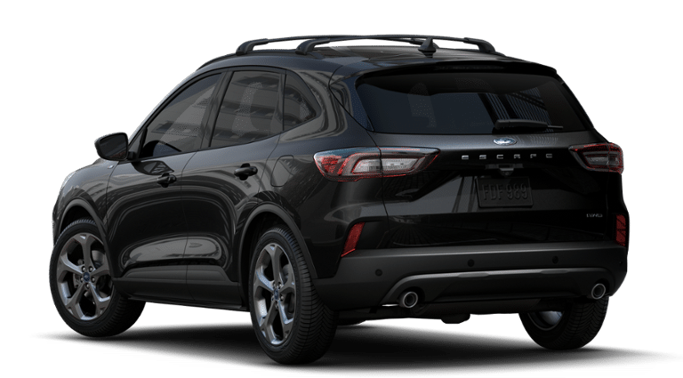 - Experience a bold blend of style, capability, and smart technology in this 2025 Ford Escape ST-Line AWD. Dressed in striking Agate Black Metallic, this SUV stands out with its exclusive ST-Line design elements, including a unique rear spoiler, sporty black mesh grille, and signature red interior stitching. It rides on sleek 18-inch Rock Metallic painted wheels and features roof-rail crossbars for added utility. Under the hood, a responsive 1.5L EcoBoost engine with Auto Start-Stop Technology is paired with an 8-speed automatic transmission, delivering a dynamic and efficient driving experience. Inside, the Ebony interior showcases sport bucket front seats, a flat-bottom steering wheel with red stitching, and a large 13.2-inch touchscreen equipped with Connected Navigation, part of the advanced Tech Package #1. Driver-assist features such as Adaptive Cruise Control, Evasive Steering Assist, Lane Centering, Rear Parking Sensors, and BLIS with Cross-Traffic Alert enhance confidence on the road. Cold weather is no match for the Cold Weather Package, which includes heated front seats, a heated steering wheel, remote start, and heated power mirrors. With its power liftgate, dual-zone automatic climate control, and FordPass Connect, this Escape ST-Line is ready for any adventure with comfort and convenience in mind.