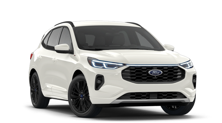 - Experience the perfect blend of athletic style, hybrid efficiency, and premium comfort in the 2026 Ford Escape Hybrid ST-Line Elite AWD. Finished in stunning Star White Metallic Tri-Coat, this Escape brings a bold, modern look to the road with its ST-Line-exclusive black mesh grille, LED signature lighting, rear spoiler, unique skid plates, privacy glass, and sleek 19" Ebony-painted aluminum wheels. Its confident stance is matched by a refined hybrid powertrain a 2.5L I-VCT Atkinson-cycle engine paired with an eCVT delivering smooth, responsive performance with the added capability of Intelligent All-Wheel Drive. Step inside to an upscale cabin designed to elevate every drive. The interior features Ebony ActiveX trimmed seats with Red Stitching, ST-Line sport bucket fronts, and a premium heated flat-bottom steering wheel that adds a performance-inspired touch. Both front seats offer power adjustability, with a 10-way power drivers seat with memory and a 6-way power passenger seat for all-day comfort. Unique interior appliqués, a center console with armrest, and thoughtful 12V/USB A & C powerpoints round out the refined, driver-focused space. Technology is front and center with the Premium Technology Package, adding a vivid Head-Up Display, 360-degree camera with split view, enhanced B&O 10-speaker audio system, and Reverse Brake Assist. The heart of the infotainment system is Fords advanced SYNC 4 with Enhanced Voice Recognition, showcased on a massive 13.2" touchscreen, paired with Connected Built-In Navigation and a wireless charging pad for seamless connectivity. Convenience features like remote start, an auto-dimming rearview mirror, and 1-touch up/down windows make day-to-day driving effortlessly smooth. Safety and driver confidence come standard. This Escape is equipped with Adaptive Cruise Control, BLIS with Cross-Traffic Alert, Evasive Steering Assist, a Pedestrian Alert Sounder, rear parking sensors, a suite of advanced airbags, LATCH child safety system, and AdvanceTrac with RSC for stability in various road conditions. Sporty, smart, and exceptionally well-equipped, the 2026 Ford Escape Hybrid ST-Line Elite AWD is crafted for drivers who want high style, innovative tech, and hybrid efficiency all in one elevated package. This is where everyday driving meets modern performance.