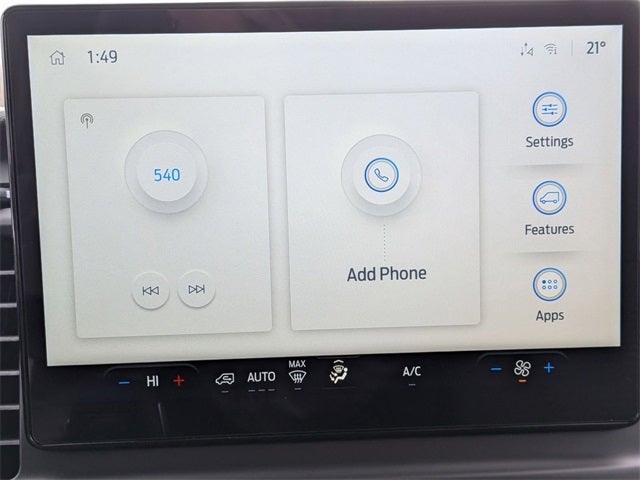 • SYNC 4 -inc: 12" center display, Bluetooth®, dual USB ports, enhanced voice recognition and connectivity package which includes information on demand panel, wireless Apple CarPlay and Android Auto compatibility, cloud connected, 911 Assist, digitial owner's manual and conversational voice command recognition