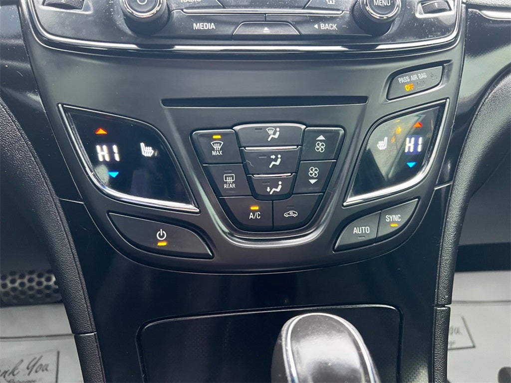 - This 2016 Buick Regal GS delivers a refined blend of performance, comfort, and modern technology, finished in striking Ebony Twilight Metallic with a sporty GS-specific design. Powered by a turbocharged 2.0L engine paired with a smooth 6-speed automatic transmission, this Regal GS offers responsive acceleration and confident handling enhanced by its performance-tuned suspension and interactive drive control system. The GS-exclusive chassis with real-time damping, Hiper Strut front suspension, Brembo braking system, and dual-outlet stainless-steel exhaust create a composed yet engaging driving experience. Inside, the black leather-appointed interior features heated front sport bucket seats with power and memory adjustments, providing both comfort and support for daily driving or longer trips. The enhanced driver information display and Buick IntelliLink system with navigation keep key information and entertainment easily accessible, while the Bose premium audio system delivers rich, immersive sound. Additional conveniences include a power tilt-sliding moonroof, rear spoiler, 19-inch V-spoke alloy wheels, and all-weather floor mats. Safety and driver-assist features include forward collision alert, lane departure warning, side blind zone alert, rear cross-traffic alert, following distance indicator, and front and rear parking assist, adding extra confidence behind the wheel. With its athletic styling, upscale interior, and advanced safety technology, this Regal GS stands out as a sport-oriented sedan that doesn’t sacrifice comfort or sophistication.