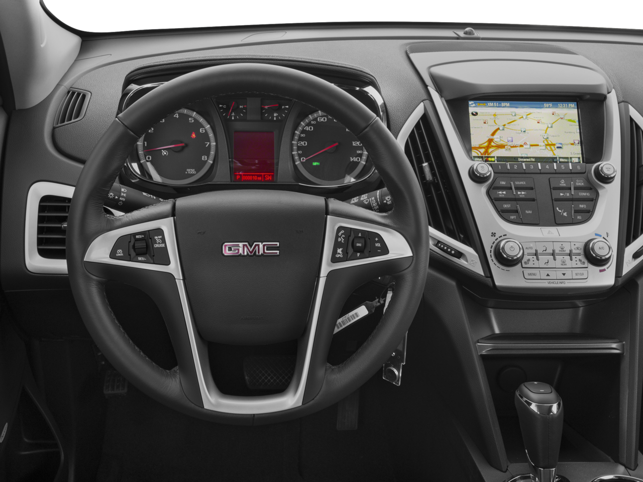 - This 2016 GMC Terrain SLT stands out in a sleek Onyx Black exterior paired with a refined Black interior, delivering a bold yet upscale look inside and out. Under the hood, it’s powered by a strong 3.6L V6 SIDI engine with Variable Valve Timing, paired to a smooth 6-speed automatic transmission, offering confident acceleration and a composed driving experience whether you’re commuting or heading out on a weekend trip. Inside, the cabin is designed with comfort and convenience in mind, featuring perforated leather-appointed seating, heated front seats, and an 8-way power-adjustable driver’s seat for personalized comfort. A power tilt-sliding sunroof brings in natural light and fresh air, while single-zone automatic climate control helps maintain the perfect cabin temperature year-round. Technology is front and center with GMC’s IntelliLink system, complete with Bluetooth® connectivity, navigation, SiriusXM capability, and a Pioneer premium 8-speaker sound system that delivers crisp, immersive audio. Remote vehicle start adds an extra level of convenience, especially during changing seasons. This Terrain SLT is also equipped with a comprehensive suite of safety and driver-assist features from the Driver Alert Package I, including Side Blind Zone Alert, Rear Cross-Traffic Alert, and Rear Park Assist, helping provide added confidence behind the wheel. Chrome power-adjustable heated mirrors, a programmable power rear liftgate, and a universal home remote further enhance everyday usability. Riding on stylish 19-inch chrome-clad aluminum wheels and equipped with chrome luggage rails, this SUV blends functionality with eye-catching design. Additional touches like all-weather floor mats, molded splash guards, and a cargo area close-out panel help keep the vehicle protected and organized. With its powerful V6 performance, premium interior finishes, advanced safety features, and versatile capability, this 2016 GMC Terrain SLT is a well-rounded SUV ready to fit a variety of lifestyles.