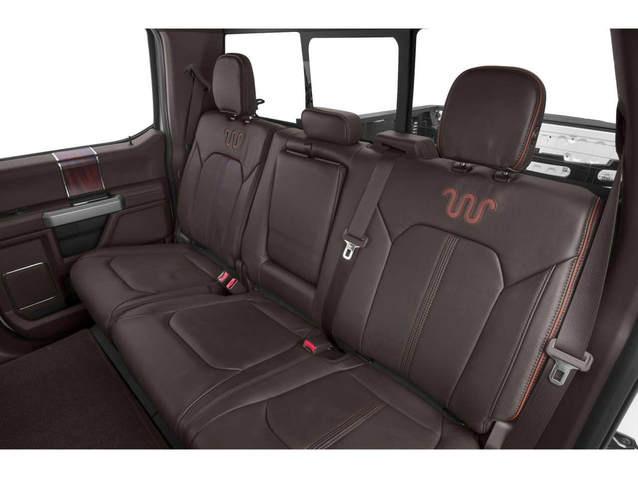 - Unique King Ranch Leather 40/Console/40 Front Seats -inc: Kingsville Antique Affect leather seating surfaces w/matching 60/40 rear bench w/partitioned locking under-seat storage, 12V powerpoint, dual integrated cupholders in armrest, 2 outboard head restraints, 10-way power (includes power lumbar), memory, easy-entry/exit driver's seat and heated/cooled driver and passenger seating