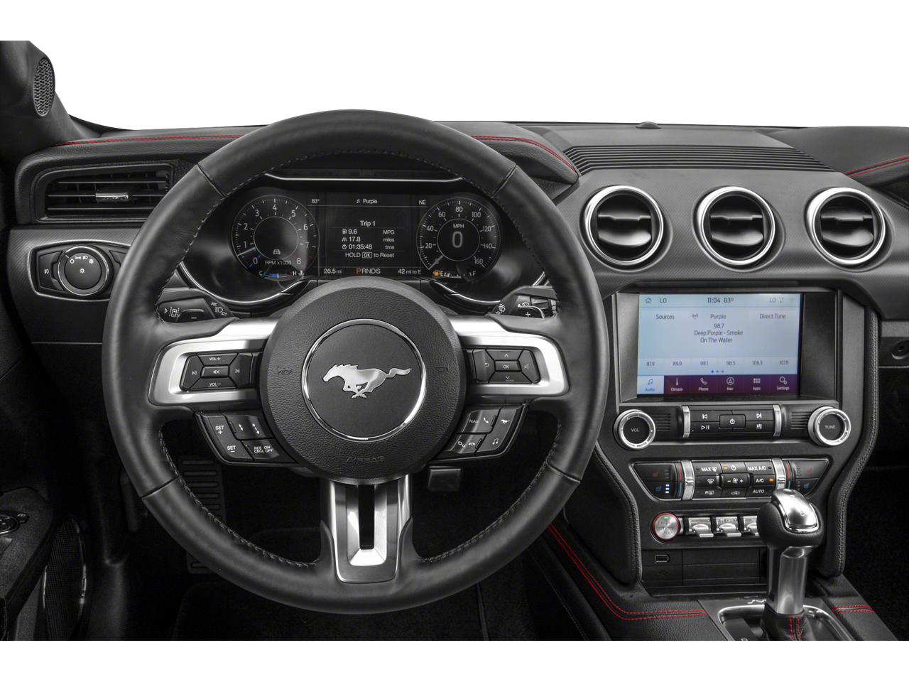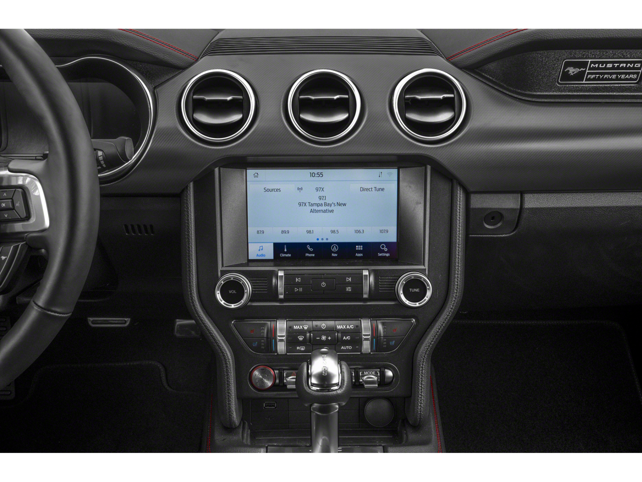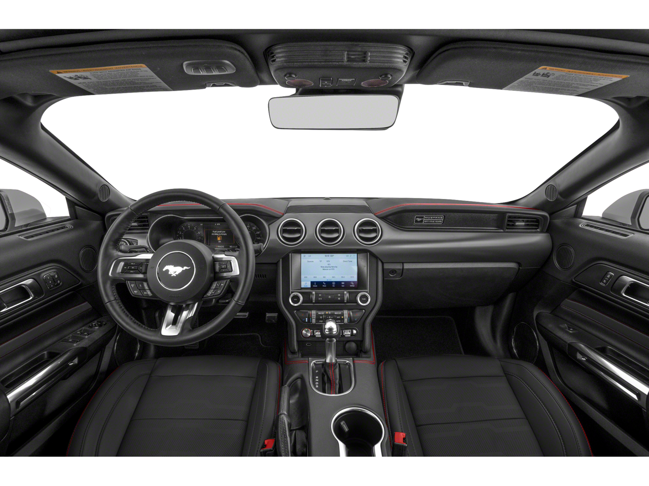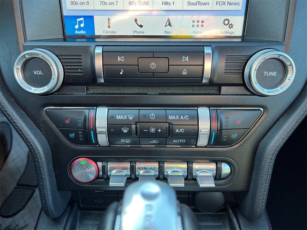- Experience open-air performance in this 2019 Ford Mustang GT Premium Convertible, finished in striking Kona Blue Metallic with a fully lined cloth top that drops at the push of a button. Built at Ford’s Flat Rock Assembly Plant, this four-passenger sports car blends iconic muscle car heritage with modern technology and premium comfort. Under the hood, the legendary 5.0L Ti-VCT V8 delivers exhilarating power, paired with a responsive 10-speed automatic transmission for smooth acceleration and confident highway cruising. A 3.55 ratio limited-slip rear axle and Active Valve Performance Exhaust elevate the driving experience, giving you the perfect balance of everyday drivability and throaty V8 performance when you want it. Selectable Drive Modes and Track Apps™ allow you to tailor the Mustang’s personality to match your mood, whether you’re carving corners or cruising with the top down. This GT Premium stands out even further with the California Special Package, featuring 19-inch machined-face high-gloss black wheels, distinctive side striping, a pedestal rear spoiler, and unique California Special floor mats. Hood vents, LED headlamps with signature lighting, LED fog lamps, quad-tip dual exhaust, and signature Pony projection lamps complete its unmistakable presence. Inside, the Ebony leather-trimmed interior with red accent stitching creates a bold, performance-inspired cockpit. A 12-inch LCD digital instrument cluster keeps key driving information front and center, while ambient lighting, dual-zone electronic automatic climate control, and a leather-wrapped steering wheel enhance everyday comfort. The Premier Trim with Color Accent Group adds refined details, complemented by premium floor mats and front and rear premium floor liners for added protection. Technology is seamlessly integrated with SYNC® 3 featuring an 8-inch touchscreen and AppLink®, voice-activated navigation, FordPass Connect™ with 4G Wi-Fi capability, and a 12-speaker B&O® Premium Sound System for an immersive audio experience. Intelligent Access with push-button start, a universal garage door opener, and global open windows add convenience at every turn. Safety and confidence come standard with BLIS® (Blind Spot Information System) with Cross-Traffic Alert, a rearview camera, reverse sensing system, AdvanceTrac® electronic stability control, and an enhanced security package. With its bold styling, premium features, and unmistakable V8 performance, this 2019 Mustang GT Premium Convertible delivers the thrill of classic American muscle with the refinement and technology today’s drivers expect.