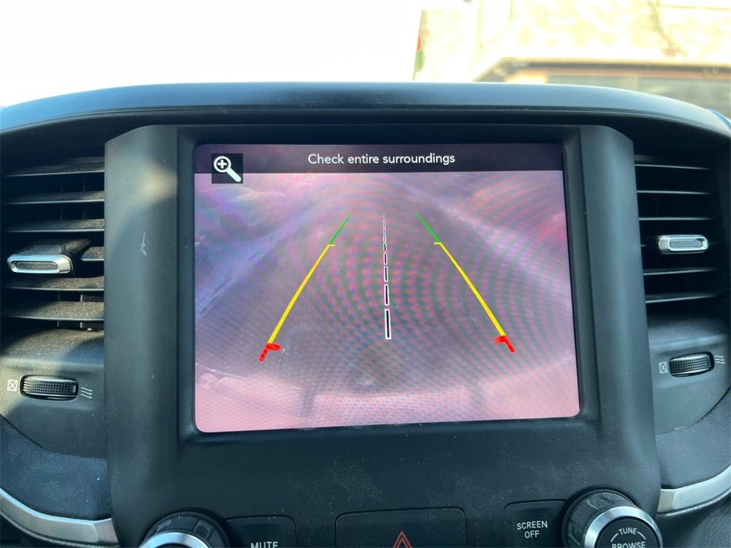 - This 2020 Ram 1500 Big Horn/Lone Star Crew Cab 4x4 delivers bold capability, refined comfort, and unmistakable presence. Finished in Bright White Clear-Coat with a Black and Diesel Gray interior, this full-size truck combines rugged strength with modern sophistication. Under the hood, the legendary 5.7L V8 HEMI® with MDS VVT pairs seamlessly with an 8-speed automatic transmission, providing impressive power, smooth acceleration, and confident towing performance. Equipped with a Class IV receiver hitch, 7-pin wiring harness, trailer sway damping, and an anti-spin differential rear axle, this Ram is ready to handle workdays, weekends, and everything in between. The Big Horn Level 2 Equipment Group enhances both comfort and technology. Inside, you’ll find deluxe cloth bucket seats, an 8-way power driver seat with power lumbar adjustment, heated front seats, and a heated leather-wrapped steering wheel — perfect for those colder mornings. Dual-zone automatic climate control keeps everyone comfortable, while the rear power sliding window and in-floor rear storage bins add convenience and practicality. Technology is front and center with the upgraded 8.4-inch touchscreen display featuring Apple CarPlay®, Android Auto™, SiriusXM®, integrated voice command with Bluetooth®, and multiple USB inputs. The 7-inch TFT color driver display provides key vehicle information at a glance, while ParkSense® front and rear park assist with stop and the ParkView® rear backup camera help make maneuvering simple and stress-free. On the exterior, 20-inch chrome-clad aluminum wheels, power-folding mirrors with supplemental signals, rear wheelhouse liners, and a dampened tailgate give this truck both style and functionality. Push-button start, remote start, remote keyless entry, and a universal garage door opener add everyday convenience. With its spacious Crew Cab design, 26-gallon fuel tank, and strong 4x4 capability, this 2020 Ram 1500 Big Horn/Lone Star is built to handle tough tasks while keeping you comfortable and connected on every drive.