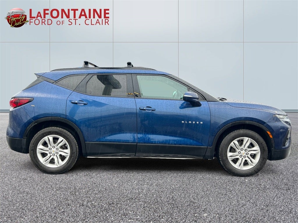 - Finished in striking Blue Glow Metallic with a Jet Black interior, this 2022 Chevrolet Blazer LT delivers bold styling, modern technology, and everyday versatility in a midsize SUV that stands out on the road. Its athletic design is paired with sculpted body lines, LED daytime running lamps, high-intensity discharge headlamps, and stylish 18-inch Bright Silver aluminum wheels, giving the Blazer a confident presence from every angle. Under the hood, a 2.0L turbocharged engine paired with a 9-speed automatic transmission provides smooth acceleration and efficient performance for both daily commutes and weekend adventures. Chevrolet’s engineering also includes Active Noise Cancellation to help create a quieter, more refined cabin experience while you drive. Inside, the Blazer offers comfortable five-passenger seating with a thoughtfully designed interior built for convenience. The 8-way power driver seat allows you to find your perfect driving position, while dual-zone automatic climate control keeps both driver and passenger comfortable in changing conditions. Additional touches like the rear seat reminder, power windows with express functions, and a spacious layout make the cabin both practical and driver-focused. Technology is front and center thanks to the Chevrolet Infotainment 3 system with an 8-inch color touchscreen. Compatible smartphones can easily connect with Bluetooth® audio streaming, voice command passthrough, and wireless Apple CarPlay and Android Auto capability, allowing you to access navigation, music, messages, and apps seamlessly while on the go. A 4.2-inch multi-color driver information display keeps key vehicle data clearly visible, while OnStar services and Wi-Fi hotspot capability help keep you connected wherever the road takes you. This Blazer LT is also equipped with the Convenience and Driver Confidence Package, adding features designed to make daily driving easier and more secure. Highlights include remote vehicle start, a power rear liftgate, rear cross traffic alert, lane change alert with side blind zone alert, and an auto-dimming rearview mirror. Heated, power-adjustable exterior mirrors with integrated turn signals, black roof rails, and a universal home remote add both style and practicality. For even more capability, this Blazer includes the Hit the Road Package with assist steps and roof rack cross rails, making it easier to load gear for road trips and outdoor adventures. Trailering equipment with hitch guidance provides added versatility for hauling small trailers or recreational equipment. Safety is a major focus thanks to Chevy Safety Assist, which includes lane keep assist with lane departure warning, automatic emergency braking, front pedestrian braking, forward collision alert, following distance indicator, and IntelliBeam automatic high beams. A rear vision camera, rear park assist, and Teen Driver technology add additional confidence and peace of mind behind the wheel. With its sporty design, advanced technology, and practical versatility, this 2022 Chevrolet Blazer LT is a well-equipped SUV ready for everyday driving, family outings, and weekend getaways alike.