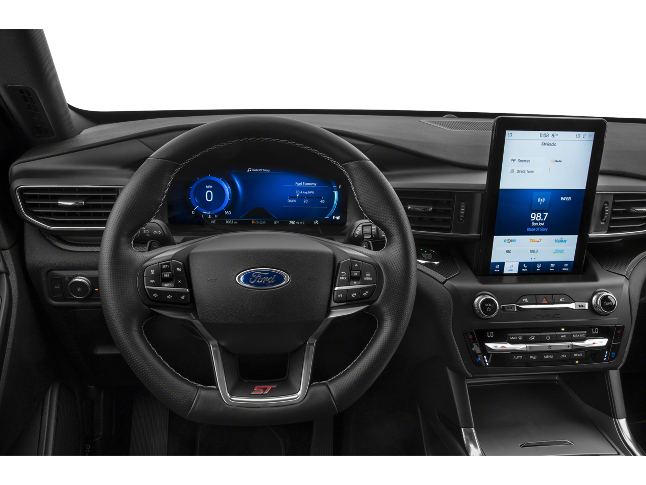 - Turn heads and enjoy thrilling performance in this 2022 Ford Explorer ST finished in stunning Star White Metallic Tri-Coat. Powered by a responsive 3.0L EcoBoost V6 engine paired with a smooth 10-speed automatic transmission and intelligent 4WD, this Explorer ST delivers the power, confidence, and capability you expect from a performance-inspired SUV. Sport-tuned suspension, quad-tip dual exhaust, and bold ST styling give it an aggressive presence both on the road and in the driveway. Inside, the cabin combines comfort and athletic design with Ebony leather-trimmed sport bucket seats featuring Miko inserts, heated front seats, and a heated leather-wrapped steering wheel with mounted controls. A 12-inch digital instrument cluster keeps key information front and center, while tri-zone automatic climate control and spacious three-row seating make every trip comfortable for passengers. The third-row folds flat for added cargo flexibility when needed. Technology is built in throughout with SYNC® 3 touchscreen infotainment, Apple CarPlay and Android Auto capability, FordPass Connect, push-button start, remote start, and intelligent access with keyless entry. USB charging ports for both front and rear passengers help everyone stay connected on the go. This Explorer ST also comes equipped with desirable features including a twin-panel moonroof, power liftgate, rear parking sensors, rearview camera, Class IV Trailer Tow Package, and Ford Co-Pilot360™ driver-assist technology. Combining bold styling, strong performance, advanced technology, and everyday practicality, this Explorer ST is ready for whatever comes next.