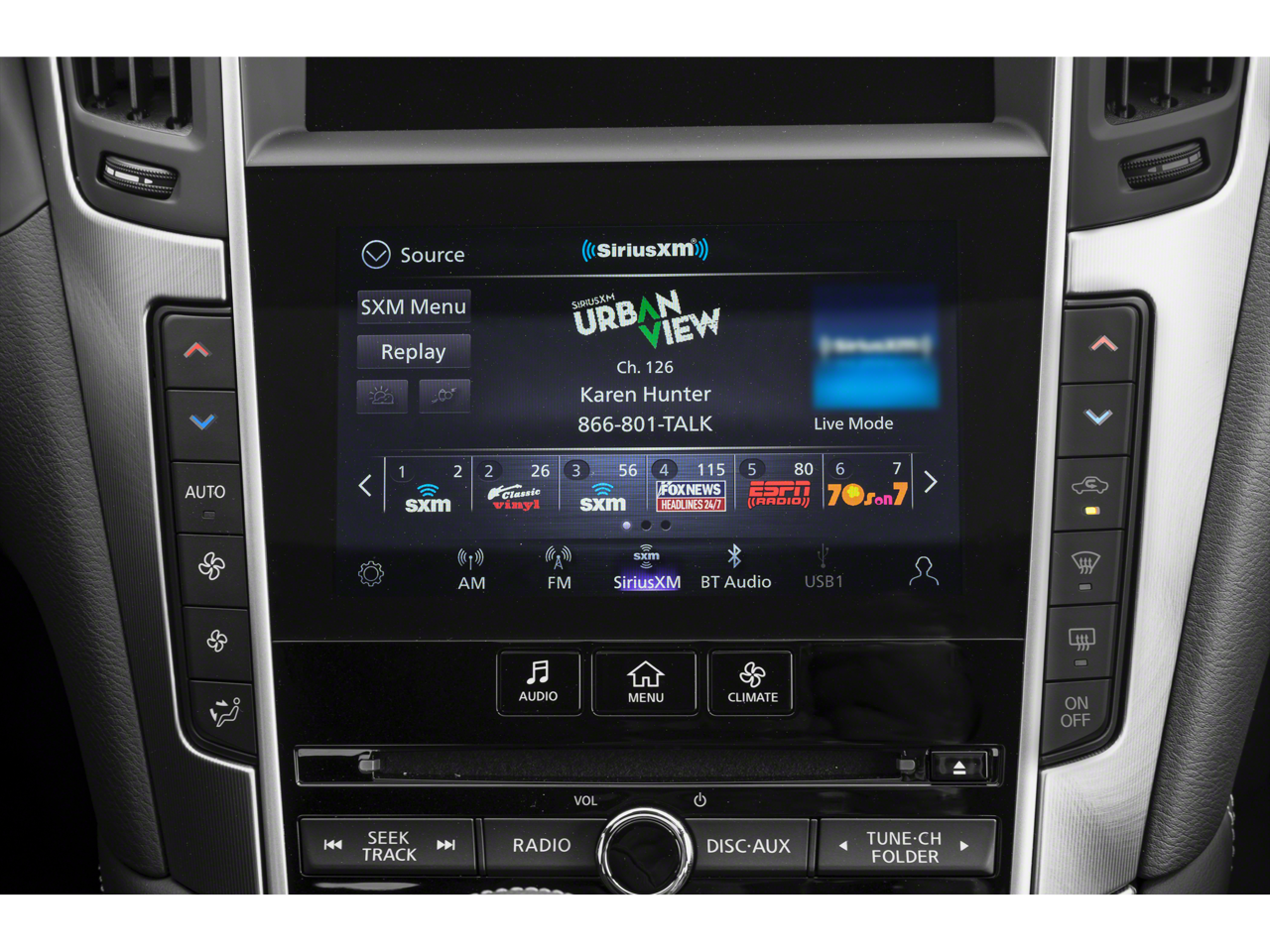 - Radio: INFINITI InTouch w/AM/FM/HD/CD -inc: Bose performance series audio 13-speaker stereo, wireless Apple CarPlay, Siri Eyes Free, Android Auto including Google Voice, INFINITI dual HD display system touchscreens, 8-inch upper and 7-inch lower color vehicle-information displays, INFINITI InTuition customizable environment for audio, climate, feature displays and IT functions stored in each INFINITI Intelligent Key, INFINITI voice recognition for audio and vehicle vehicle information systems, speed-sensitive volume control, steering wheel-mounted audio controls, Streaming audio via Bluetooth, Bluetooth hands-free phone system w/hands-free text messaging assistant, SiriusXM radio w/advanced audio features and a 3-month complimentary trial, in-glass FM diversity antenna, 2 illuminated USB connection ports (1 type A and 1 type C), 2 12-volt accessory power outlets and auxiliary audio input