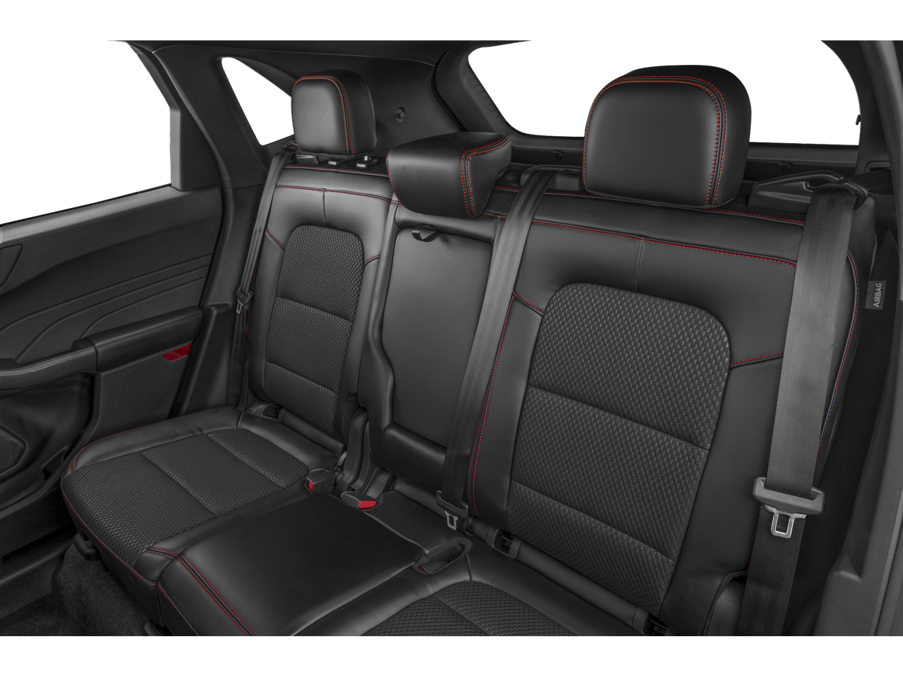 - The 2023 Ford Escape ST-Line AWD blends athletic styling, intelligent technology, and capable performance into a sleek compact SUV designed for everyday versatility. Finished in Agate Black Metallic, this model carries an unmistakably sporty look with its black mesh grille, rear spoiler, LED headlamps and taillamps, roof rack side rails, and exclusive ST-Line badging. The 18-inch Rock Metallic painted wheels and red accent stitching throughout the cabin underscore its bold, confident character. Inside, the Escape ST-Line offers a driver-focused interior that’s both modern and comfortable. The Ebony cloth and vinyl sport seats with red stitching, flat-bottom steering wheel, and aluminum sport pedals create an athletic atmosphere. Convenience features include dual-zone automatic climate control, rotary gear shift dial, and 13.2-inch touchscreen with Built-In Navigation, providing seamless access to Ford’s advanced infotainment system. Passengers will also appreciate the attention to comfort with heated front seats, heated steering wheel, and rear seat armrest with cupholders. Performance comes from the 1.5L EcoBoost engine paired with an 8-speed automatic transmission and all-wheel drive, offering confident traction and smooth power delivery in all conditions. The Sport-Tuned Suspension adds responsive handling, while Auto Start-Stop Technology enhances efficiency. Intelligent driver-assist features from the Tech Package include Evasive Steering Assist, Lane Centering Assist, Intelligent Adaptive Speed Control, Rear Parking Sensors, and Blind Spot Information System with Cross-Traffic Alert, ensuring peace of mind on every drive. With its perfect blend of style, capability, and modern technology, this 2023 Ford Escape ST-Line AWD delivers a sporty yet refined experience—ready for commutes, adventures, and everything in between.