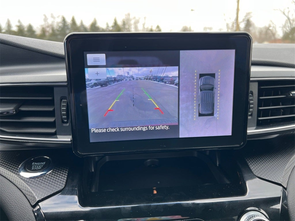 - Bold styling meets everyday versatility in this 2023 Ford Explorer ST-Line 4WD, finished in eye-catching Rapid Red Metallic Tinted Clearcoat. With its athletic stance, blacked-out exterior accents, and 21-inch aluminum wheels wrapped in P275/45R21 all-season tires, this Explorer delivers a confident presence whether you’re pulling into the office or heading out for a weekend adventure. Under the hood, the 2.3L EcoBoost® I-4 engine pairs seamlessly with a smooth-shifting 10-speed automatic transmission, giving you the perfect balance of responsive power and efficiency. Intelligent 4WD adds extra confidence in changing road conditions, while features like Trailer Sway Control enhance stability when hauling. The ST-Line trim stands out with signature design elements including a black mesh grille, LED headlamps with signature lighting, LED fog lamps, chrome-tipped dual exhaust, privacy glass, and a power liftgate for added convenience. Heated, power-folding mirrors with approach lamps add both functionality and style. Inside, the cabin blends sport and comfort with Ebony ActiveX™ seating accented by bold red stitching. Heated front seats, a heated leather-wrapped steering wheel with mounted controls, and a power-adjustable driver and passenger seat make every drive comfortable. The second-row split bench with E-Z entry and a third-row 50/50 fold-flat design provide flexible seating for up to seven, along with versatile cargo space when you need it. Technology is front and center with SYNC® 3 featuring an 8-inch touchscreen and Apple CarPlay®/Android Auto™ compatibility, voice-activated navigation, and a 12-speaker B&O sound system for premium audio. A wireless charging pad, FordPass™ Connect with 4G LTE Wi-Fi capability, remote start, and a 360-degree camera system add modern convenience to your daily routine. Ford Co-Pilot360™ Assist+ enhances driver confidence with advanced safety features, complemented by rear parking sensors, AdvanceTrac™ with RSC®, a perimeter alarm, and a comprehensive airbag system including Safety Canopy® coverage. Sporty, spacious, and packed with technology, this 2023 Explorer ST-Line 4WD delivers standout looks and capability in one well-rounded SUV.
