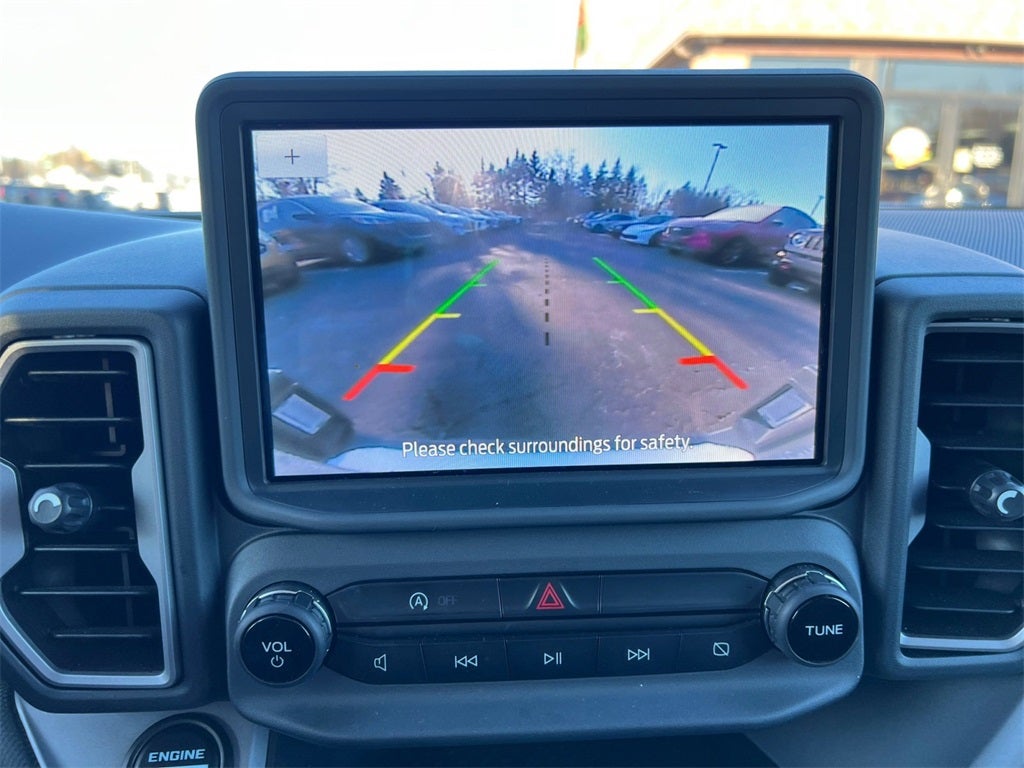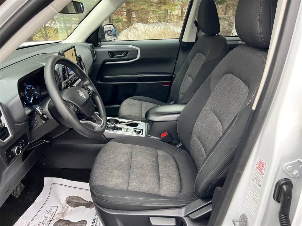 - This 2024 Ford Bronco Sport Big Bend 4x4 blends everyday practicality with true Bronco capability, making it the perfect SUV for drivers who want comfort during the week and adventure on the weekend. Finished in classic Oxford White with a bold black grille and black roof rack side rails, it carries the unmistakable Bronco styling with rugged confidence. Under the hood, the efficient and responsive 1.5L EcoBoost® engine pairs seamlessly with an 8-speed automatic transmission, delivering smooth acceleration and capable performance. The advanced 4x4 system combined with Ford’s Terrain Management System™ with five selectable G.O.A.T. Modes™ (Goes Over Any Type of Terrain) gives you confidence whether you're navigating snow, sand, gravel, or city streets. Inside, the Ebony Black unique cloth interior offers a clean, durable, and comfortable cabin designed for active lifestyles. The 60/40 split-folding rear seats and rubberized cargo floor make it easy to load up gear, groceries, or weekend adventure essentials. Thoughtful details like electronic automatic temperature control, illuminated entry, USB-A and USB-C ports, and steering wheel-mounted audio and cruise controls enhance everyday convenience. Technology is front and center with the SYNC® 3 system displayed on an 8-inch touchscreen featuring Apple CarPlay® and Android Auto™ compatibility. FordPass™ Connect keeps you connected on the go, while the six-speaker audio system delivers crisp sound throughout the cabin. Safety is a strong suit with Ford Co-Pilot360™, which includes features such as a rear view camera, AdvanceTrac™ with Roll Stability Control™, Safety Canopy® side curtain airbags, SOS Post-Crash Alert System™, and a tire pressure monitoring system. LED headlamps with auto high beams, daytime running lamps, and heated power mirrors provide added visibility and confidence in varying driving conditions. With its elevated ride height, durable design, and smart technology, this 2024 Bronco Sport Big Bend is built for drivers who want versatility without sacrificing comfort. Whether you're commuting, road-tripping, or heading off the beaten path, this Bronco Sport is ready for whatever comes next.