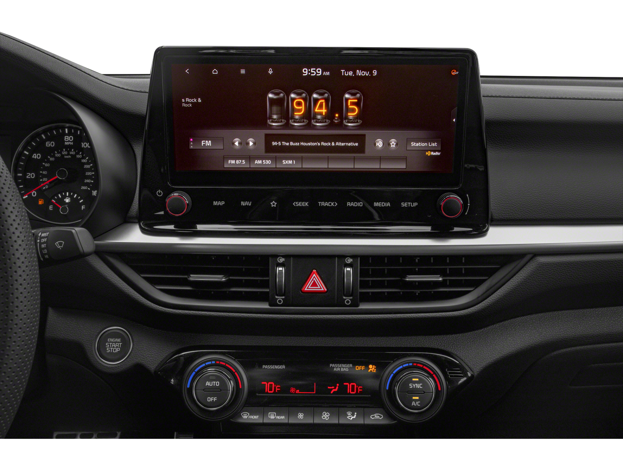 - Radio: 10.25" Display Audio -inc: 6 speakers, 10.25" touch screen, navigation, Kia Connect, HD radio, Apple CarPlay, Android Auto, Bluetooth hands-free and USB input