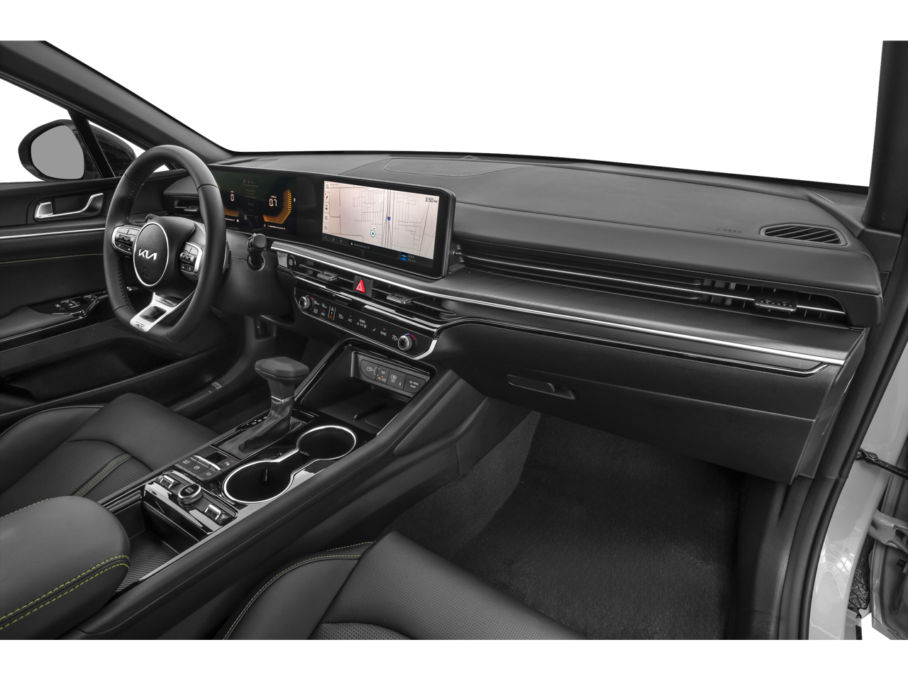 - Turn heads and enjoy thrilling performance in this 2025 Kia K5 GT finished in eye-catching Wolf Gray with a sleek Black interior. Combining bold styling, modern technology, and turbocharged power, this sporty sedan delivers an exciting driving experience while maintaining everyday comfort and practicality. Under the hood, the K5 GT is powered by a 2.5L Turbocharged 4-cylinder engine producing an impressive 290 horsepower and paired with an 8-speed dual-clutch automatic transmission. A sport-tuned suspension, GT brake system with neon calipers, and quad-tip exhaust add confidence and excitement every time you hit the road. Inside, the cabin is loaded with upscale amenities including SynTex seating surfaces, heated front seats, a power driver’s seat with lumbar support, dual-zone automatic climate control, and a panoramic sunroof with power sunshade. The GT sport steering wheel with paddle shifters adds a performance-inspired touch, while rear air vents and split-folding rear seats make it practical for passengers and cargo alike. Technology is front and center with a large 12.3-inch touchscreen display featuring navigation, wireless Apple CarPlay and Android Auto, Bluetooth® connectivity, SiriusXM capability, a wireless phone charger, remote start, remote climate control, and multiple USB charging ports throughout the cabin. Safety is equally impressive with advanced driver-assist features such as Forward Collision-Avoidance Assist, Blind-Spot Collision-Avoidance Assist, Lane Keeping Assist, Lane Following Assist, Rear Cross-Traffic Collision-Avoidance Assist, Navigation-Based Smart Cruise Control with Stop & Go, Highway Driving Assist, Safe Exit Assist, parking distance warning, and a rearview camera with dynamic guidelines. With aggressive GT styling, 19-inch gloss black alloy wheels, LED lighting, premium comfort, and exhilarating turbocharged performance, this 2025 Kia K5 GT is the perfect blend of sporty attitude and daily-driver versatility.